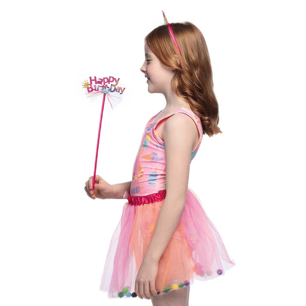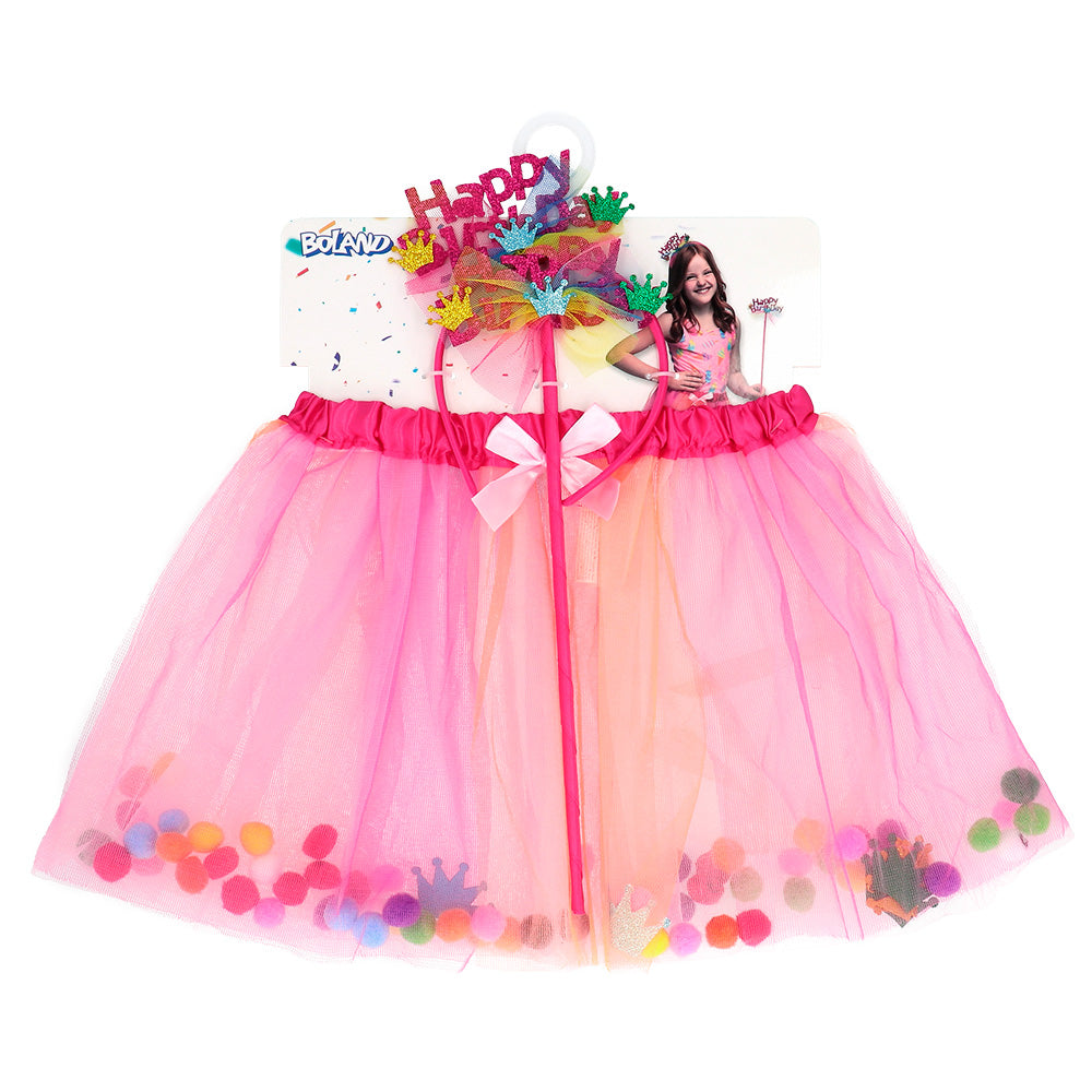 Stel je voor: een kamer vol gelach, muziek en een zee van roze. Met de Set Fee 'Happy Birthday' wordt deze droom werkelijkheid. De diadeem geeft je kleine meid een koninklijke uitstraling, terwijl de tutu haar uitnodigt om te dansen als een echte fee. En met de toverstaf in haar hand kan ze al haar verjaardagswensen uitspreken. Deze set is niet alleen een outfit, maar een ervaring die haar verjaardag onvergetelijk maakt.
