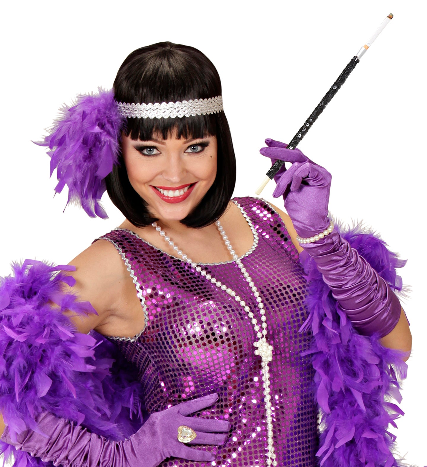 Sigarettenhouder met zwarte pailletten Mooie houder voor sigaretten. Deze sigarettenhouder is voorzien van zwarte pailletten. De sigaretehouder maakt uw charleston... Lees meer