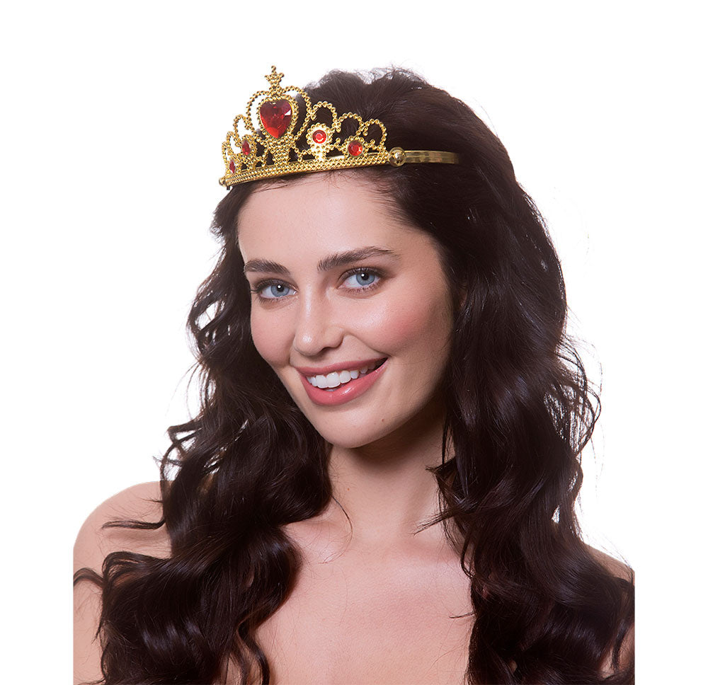 Voel je een echte prinses met deze sprankelende tiara! De gouden kroon en rode nepdiamanten maken je outfit compleet. Perfect voor elk feest!