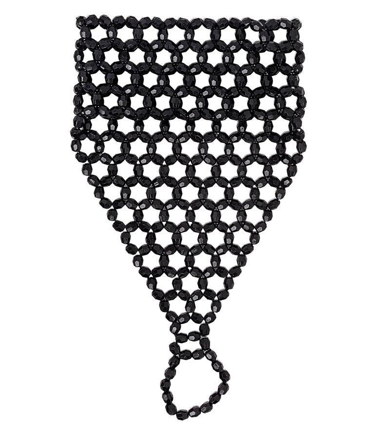 Vingerhandschoen uit zwarte pareltjes