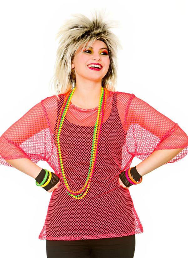 Visnet t-shirt 80-jaren neon roze