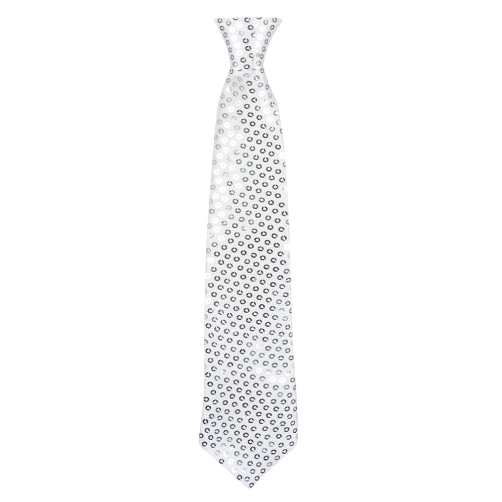 Zilveren disco stropdas met pailletten