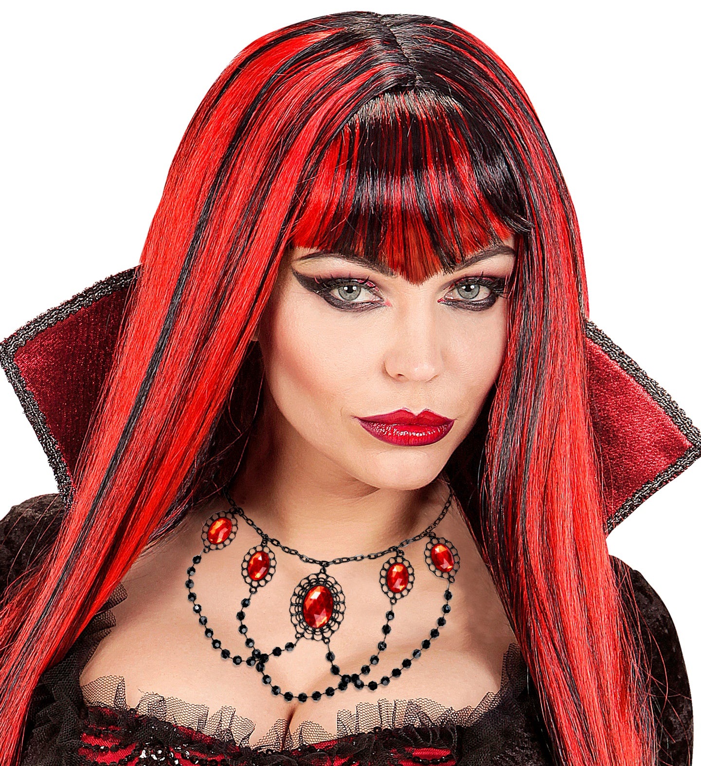 Maak je outfit compleet met deze zwarte choker met 5 rode stenen. Perfect voor een mysterieuze look! Kenmerken Stijlvolle zwarte... Lees meer