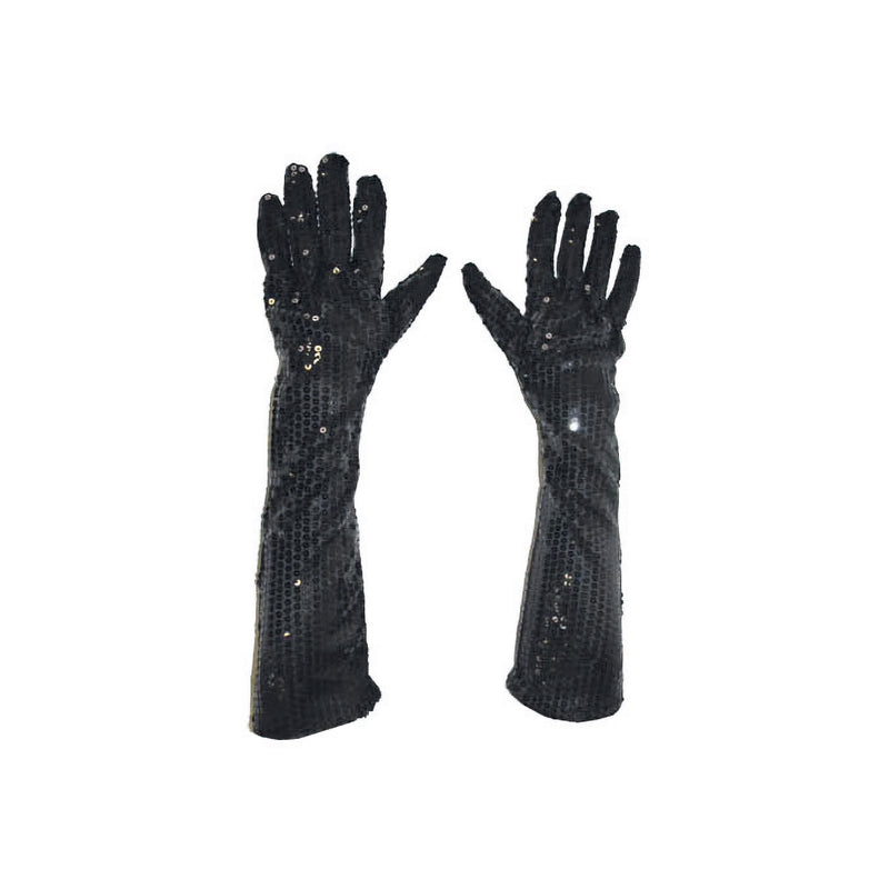 Zwarte glitter handschoenen met pailletten 45cm