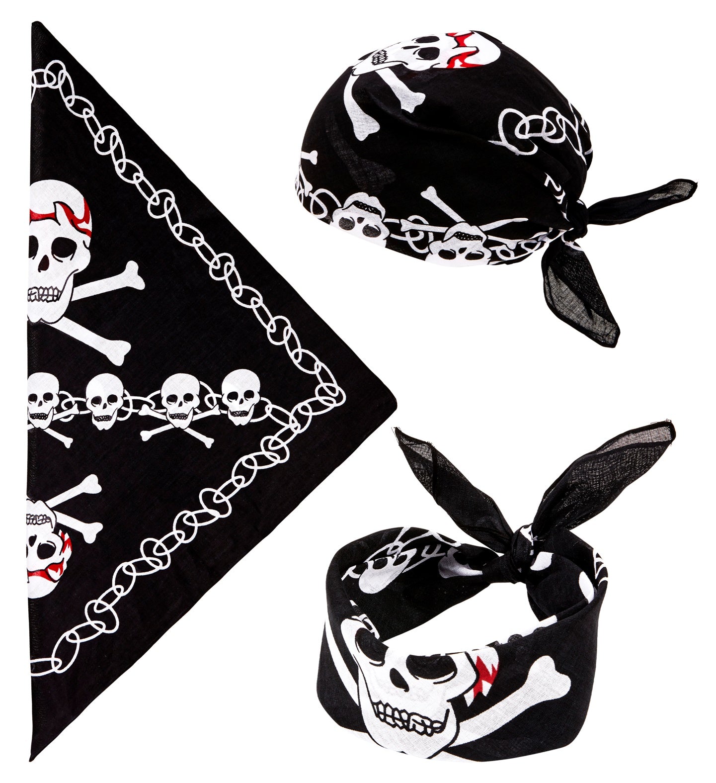 Zwarte piratenbandana met schedels
